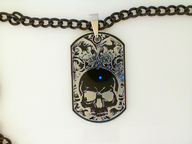 Stainless Steel Skull Design Dog Tag Pendant SKU: 575-2587 Men's Stainless Steel Black Plated with Skull Design Dog Tag Pendant with Curb Chain Share: Share on Twitter Share on Pinterest Share on Facebook $45.00 Reserve In Store name email phone Reserve